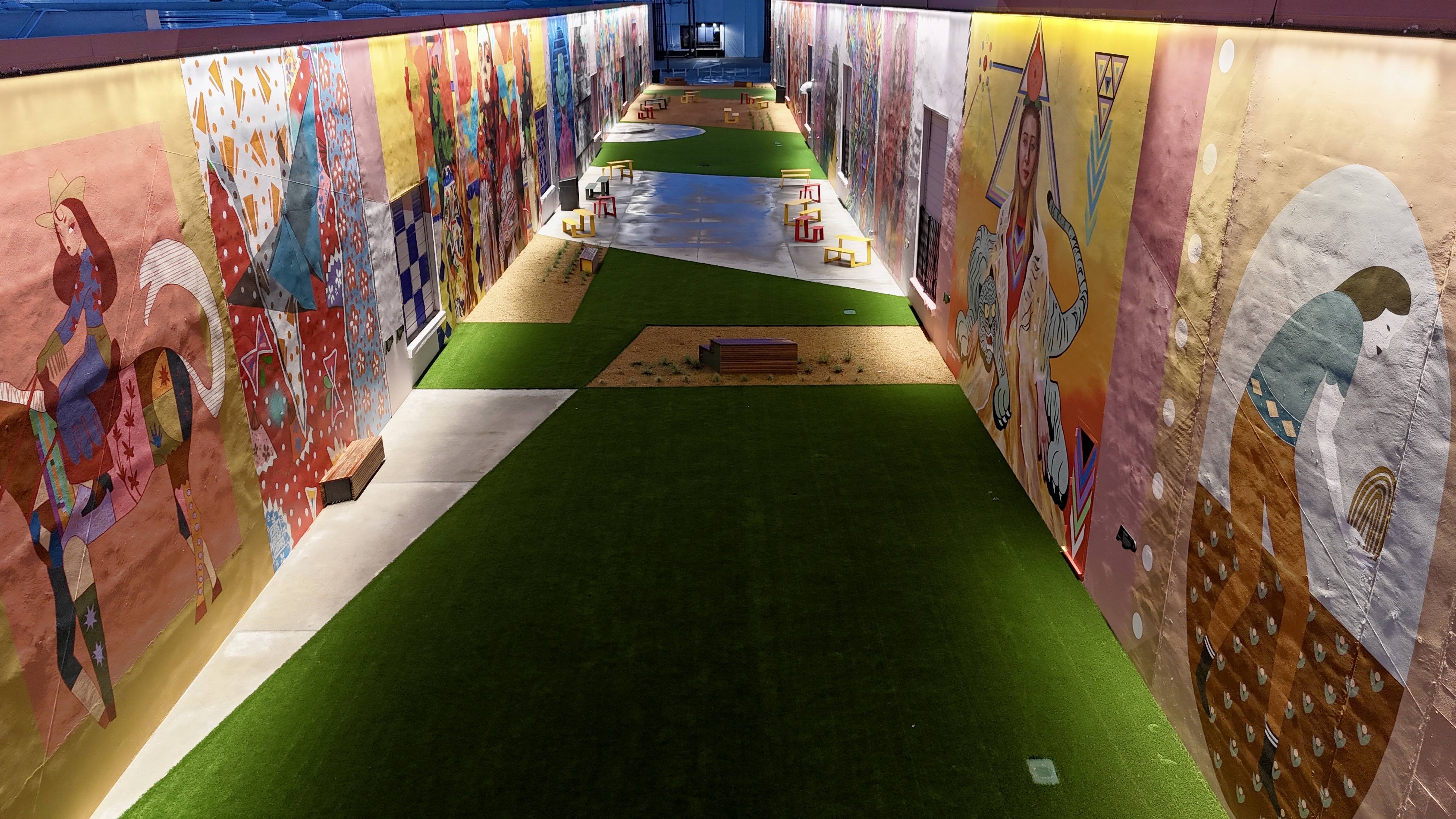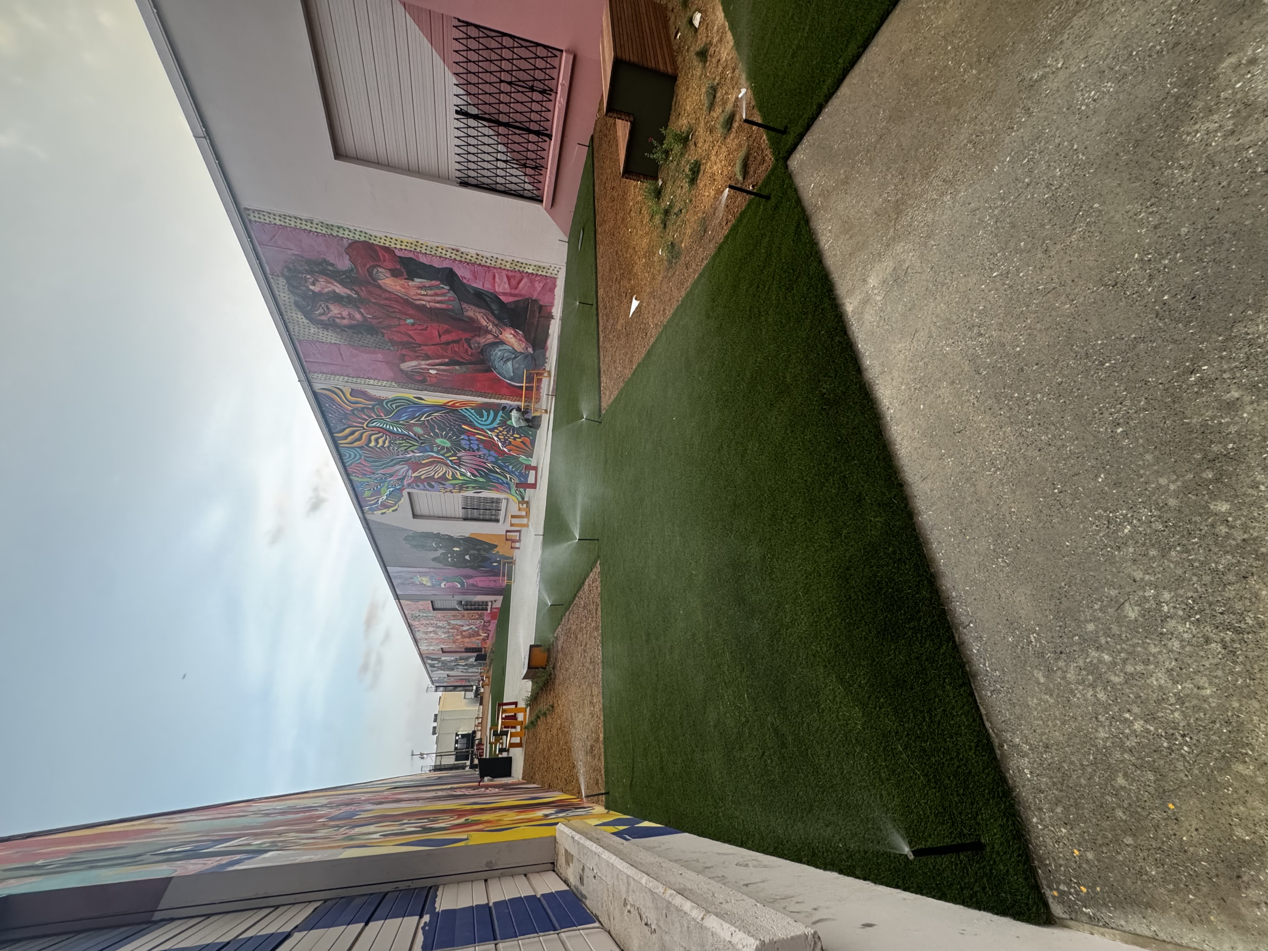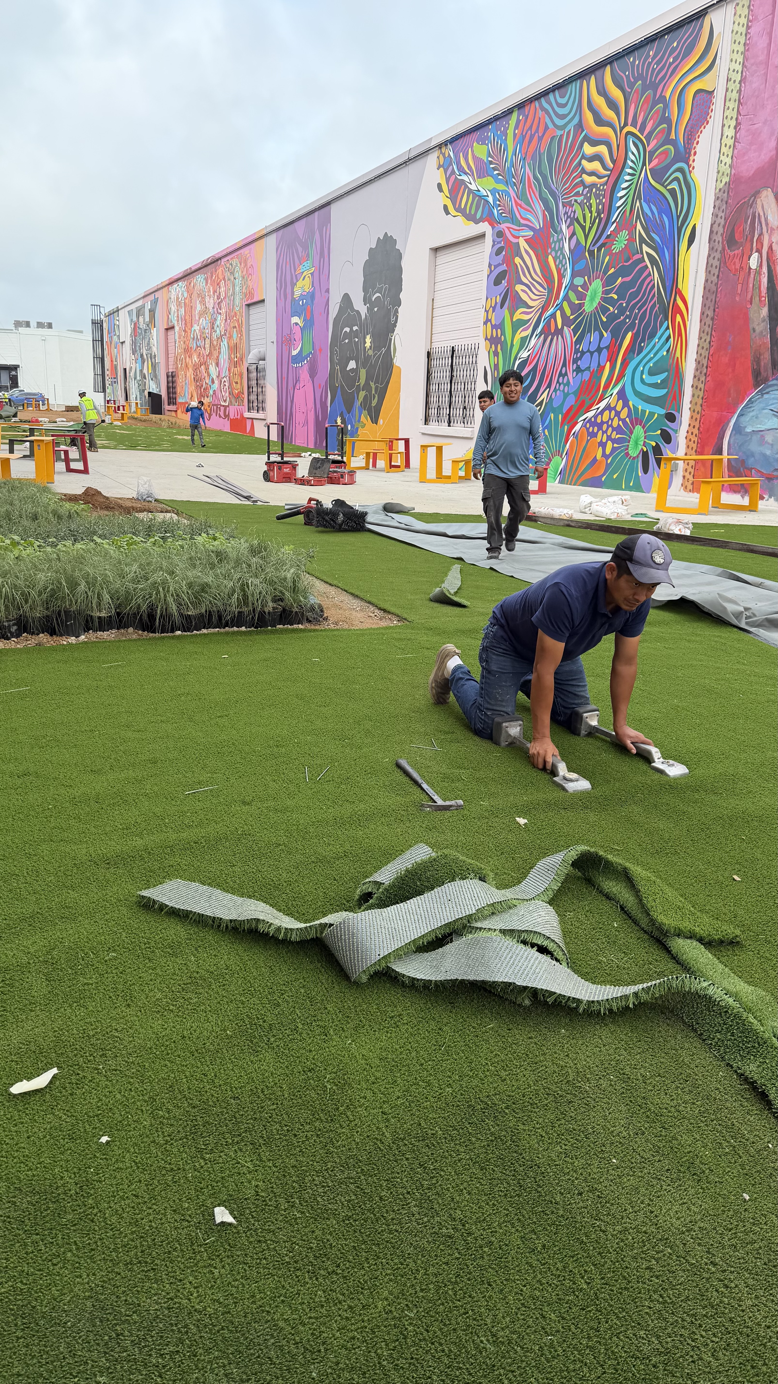 5,600 SF of commercial-grade artificial turf across the gallery’s gathering and pathway zones, specified by Paperkites Studio and installed by our crew to handle high public foot traffic and the drainage realities of an enclosed alleyway. Three TurfHub products in the Paperkites spec: