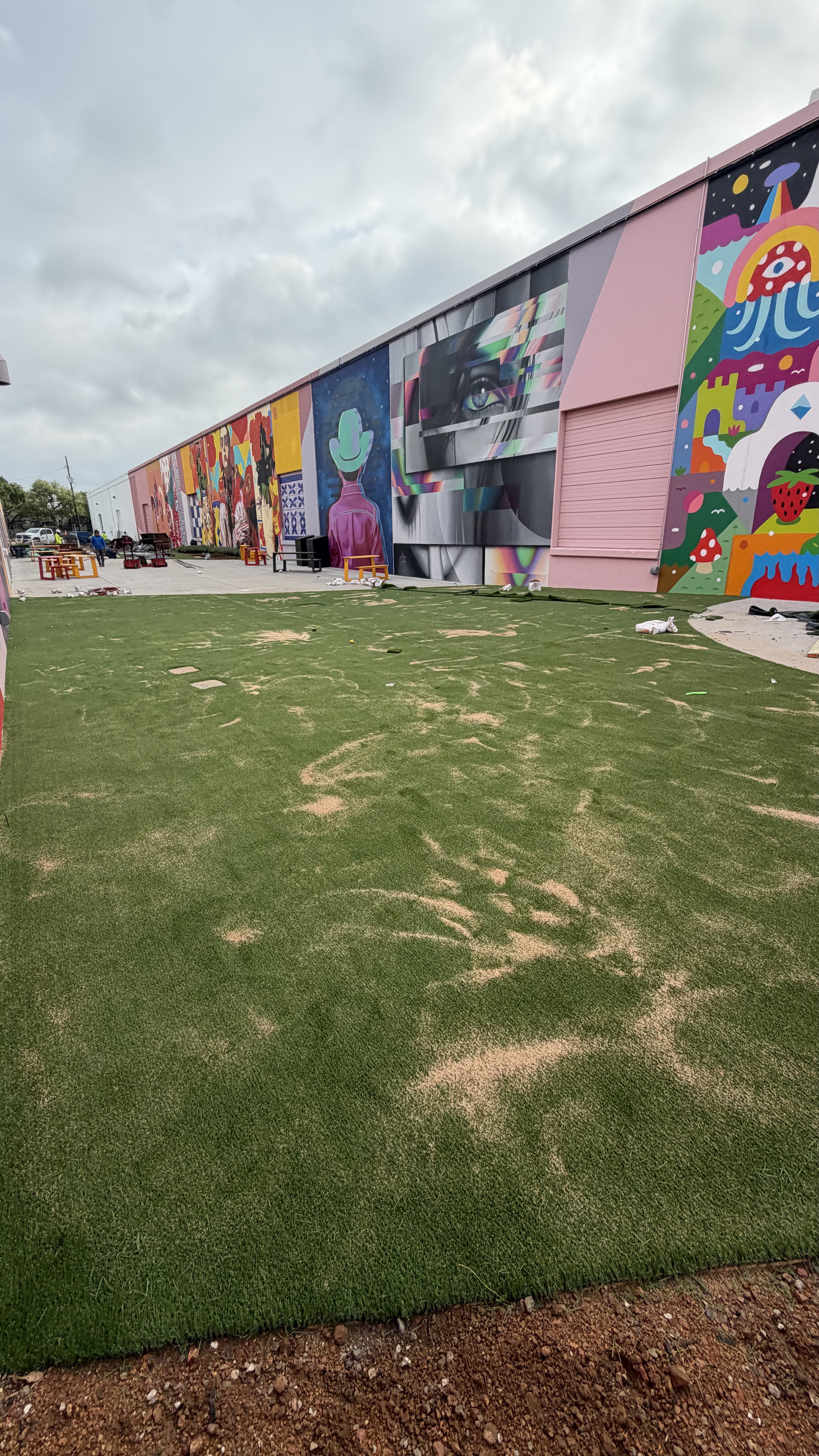 Yes. We’ve installed alongside masonry, MEP rough-in, mural artists, restaurant build-outs, and tenant TIs. We sequence sub-base, base, and turf around the schedule the GC publishes. Where we need access windows or protected zones, we say so up front.